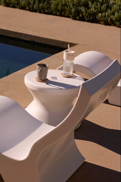 Made with UV20 rated resin, color stabilized for up to 20,000 hours of direct sunlight, every in-pool side table and ice bin offers as much form as function. Triple your umbrella as a cooler and an accent piece, or find another reason to stay in the pool with the PartyPad Swim-Up Bar.